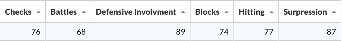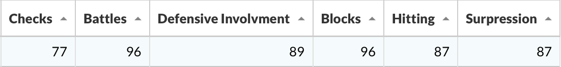 Graves is very involved defensively and matches Hamilton in suppression. But he grades out much better in terms of gritty metrics like battles, blocking shots, and laying the body.