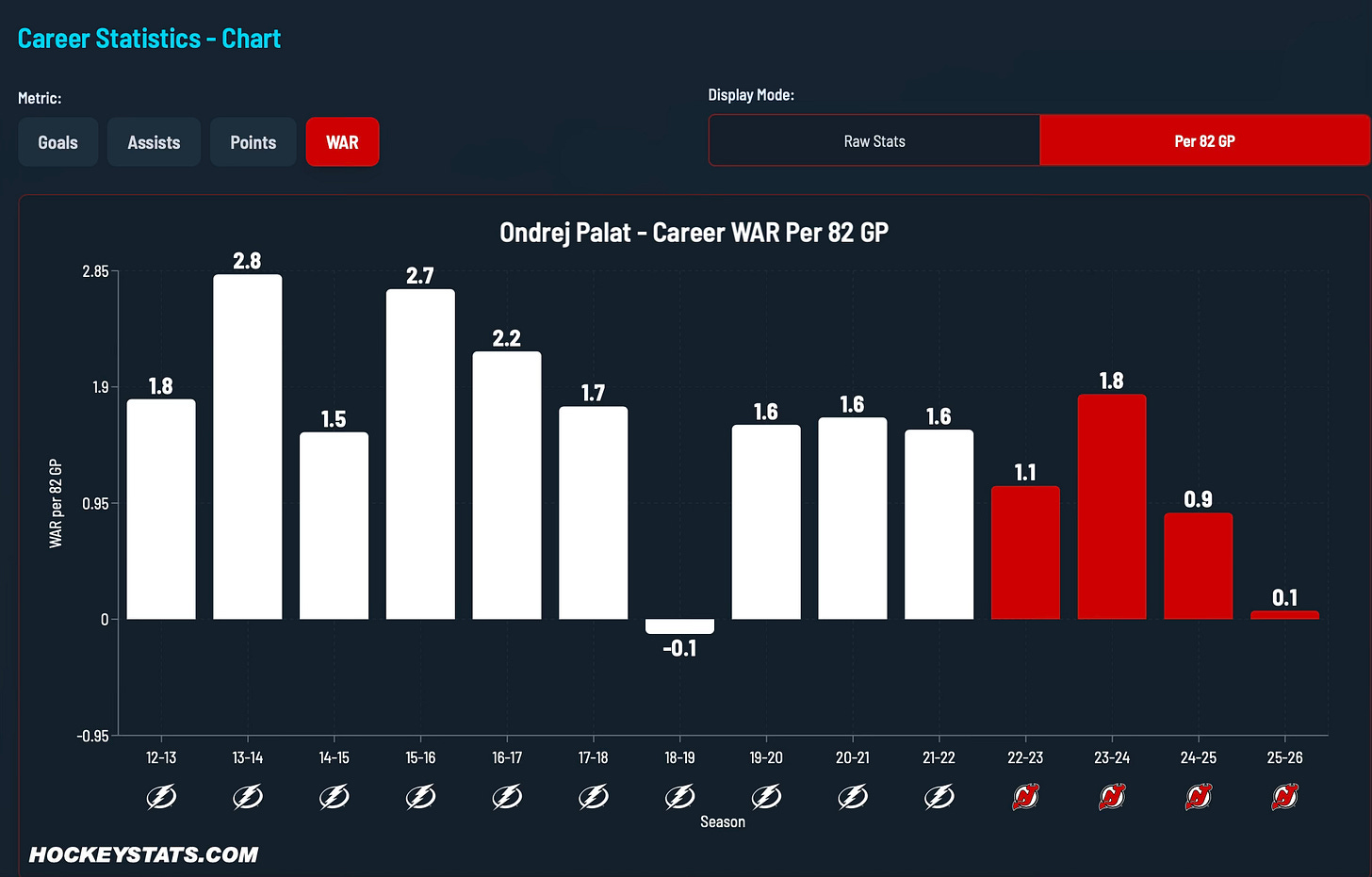 Those outputs are beyond problematic for a $6 million player who doesn’t play regularly on any special teams unit (Palat ranks 11th on the Devils in PP TOI and 14th in PK TOI).