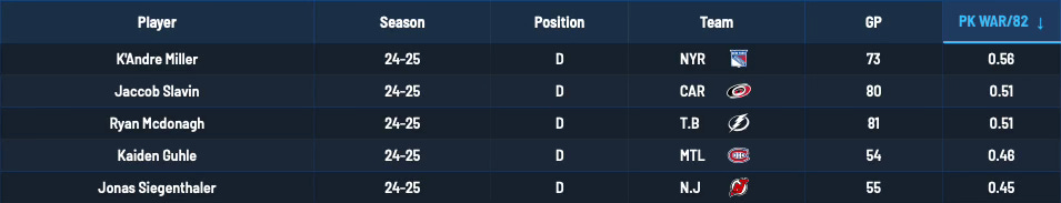 The Hurricanes added K’Andre Miller, who led all defensemen in PK WAR per 82 games last season. They’re going to be a nightmare to deal with.